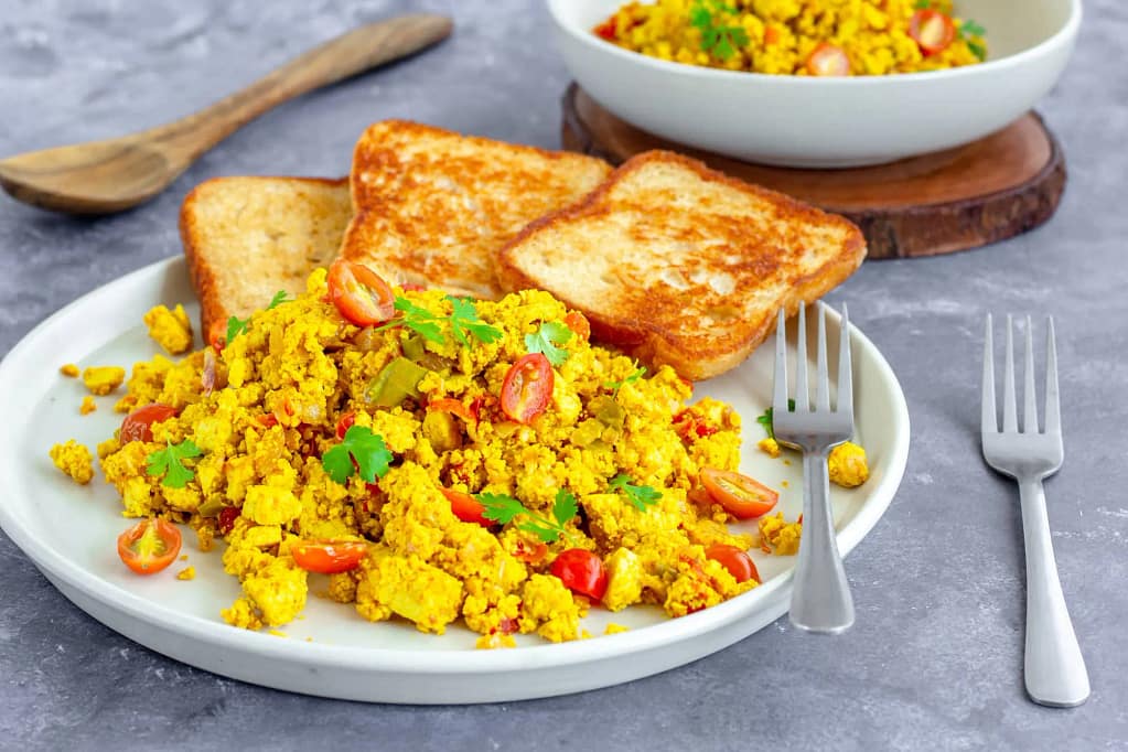 Tofu bhurji is a protein-rich tofu scramble variety that is quick and easy to make. It is made with cumin seeds and oil, so it comes out wetter than traditional tofu scramble. You can add many toppings like onions, peppers, shallots, tomatoes, and spices.