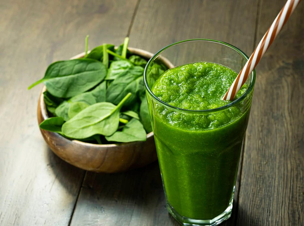 Spinach, kale, and avocado turn your smoothie green and all three are great for detox and general nutrition. Spinach and kale both contain lots of iron, magnesium and antioxidants, while avocado makes your smoothie higher in monounsaturated fat and very thick. If you find the taste unappealing, try adding stevia or turbinado sugar, and use a banana to make it creamier.