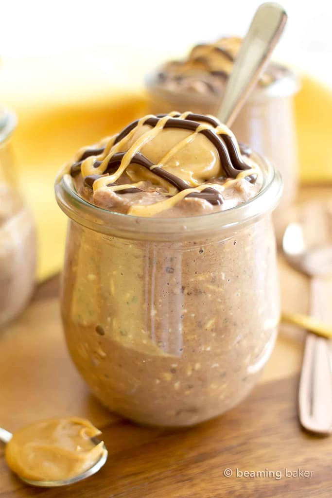 Oats already have some protein, but adding a nut butter like peanut butter puts in even more. Overnight oats and peanut butter offer the perfect combination of nutrition that staves off hunger like no other food can!
